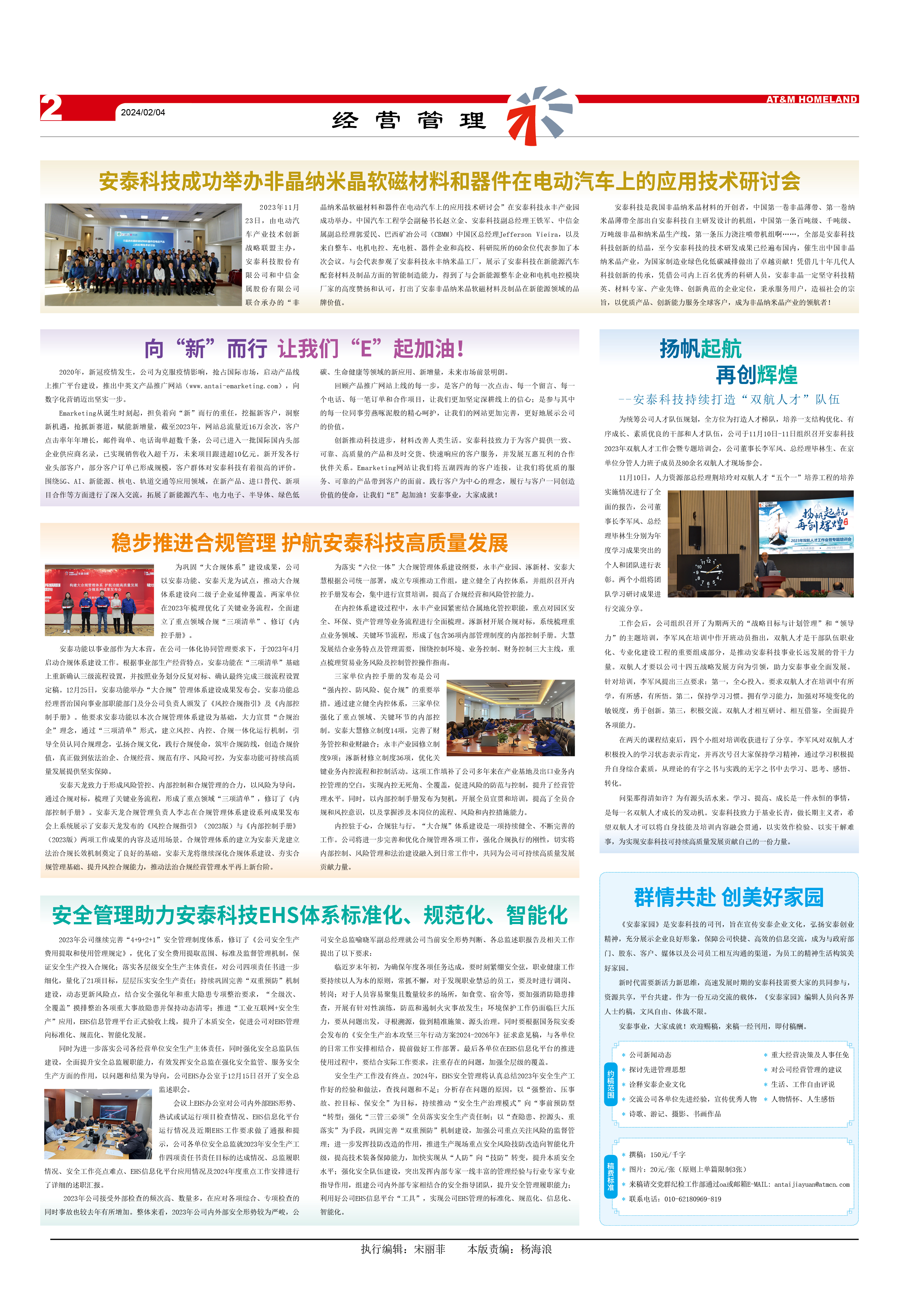 2023年11月23日,由電動汽車產業技術創新戰略聯盟主辦,安泰科技股份有限公司和中信金屬股份有限公司聯合承辦的“非晶納米晶軟磁材料和器件在電動汽車上的應用技術研討會”在安泰科技永豐產業園成功舉辦。中國汽車工程學會副秘書長趙立金、安泰科技副總經理王鐵軍、中信金屬副總經理郭愛民、巴西礦冶公司(CBMM)中國區總經理Jefferson Vieira,以及來自整車、電機電控、充電樁、器件企業和高校、科研院所的60余位代表參加了本次會議。與會代表參觀了安泰科技永豐納米晶工廠,展示了安泰科技在新能源汽車配套材料及制品方面的智能制造能力,得到了與會新能源整車企業和電機電控模塊廠家的高度贊揚和認可,打出了安泰非晶納米晶軟磁材料及制品在新能源領域的品牌價值。